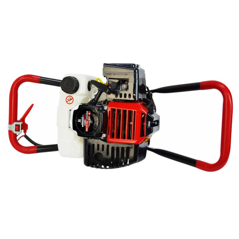 Мотобур BRAIT PBR-52/000 PROMO предназначен для бурения отверстий в грунте для установки опор и заборов, для посадки деревьев а зимой для бурения лунокПреимущества Надежность. Благодаря высокому качеству поршневой группы мотобур без проблем справляется с интенсивными нагрузками Долгий срок службы. Двухтактный двигатель имеет воздушное охлаждение, что повышает его износостойкость Контроль. Бур имеет две рукоятки, на одной из которых расположены кнопки управления Вес 8,5 кг. С мотобуром без проблем справится один оператор Продуманность. Крупные вентиляционные отверстия позволяют двигателю эффективно охлаждаться Надежность Эргономичность Легкое управление Сбалансированная конструкции Мощный инструмент для эффективной и быстрой работы Воздушное охлаждение двигателя Топливный насос - для облегчения запуска Прочная рамная конструкция Все органы управления расположены на одной рукоятке для удобного управления рабочим процессом Полупрозрачный топливный бак - для контроля за расходом топлива Емкость для приготовления рабочей смеси в комплекте Есть возможность присоединения шнеков различных диаметров для работы с почвой или льдом
