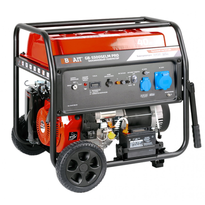 Генератор бензиновый Brait 02.01.108.035, 5,0/5,5 кВт, 220В/50 Гц, электрозапуск, ф-я DUPLEX (пусковой ток) GB-5500SELM PRO