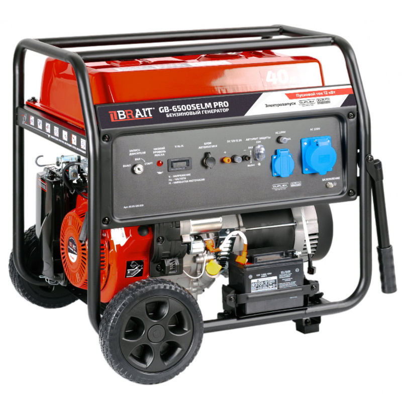 Генератор бензиновый Brait 02.01.109.035, 6,0/6,5 кВт, 220В, ф-я DUPLEX(пусковой ток) GB-6500SELM PRO