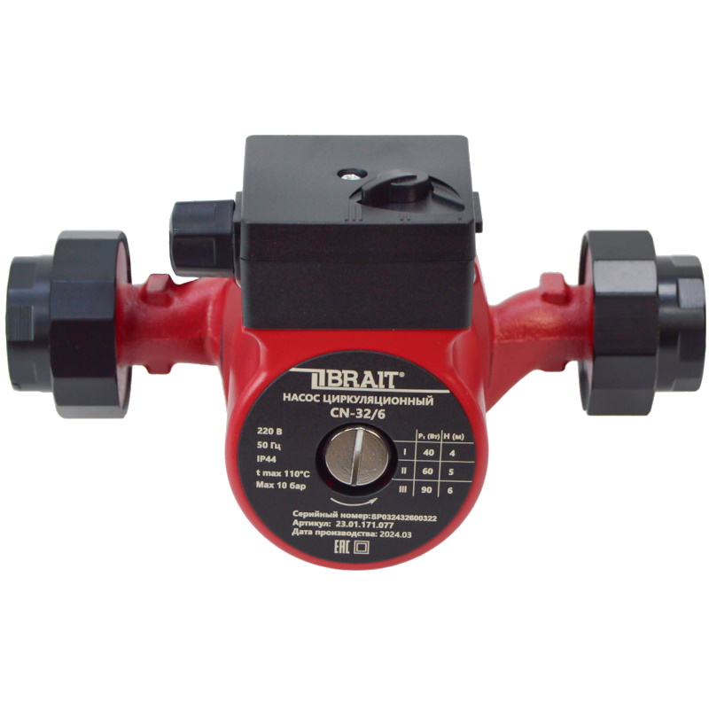 Насос циркуляционный Brait 23.01.171.077, 40/60/90 Вт, максимальная подача 35/45/55 л/мин CN-32/6
