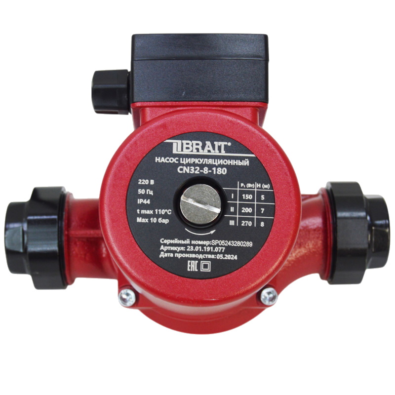 Насос циркуляционный Brait 23.01.191.077, три режима работы, мощность 270/200/150 Вт CN32-8-180