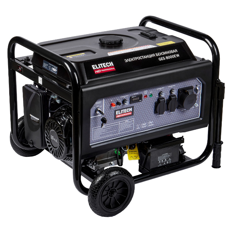 Генератор бензиновый Elitech HD 204669, 4-т, максимальная 6.5/номинальная 6.0 кВт, 230В-27А/12В-8.3А GES 8000EW