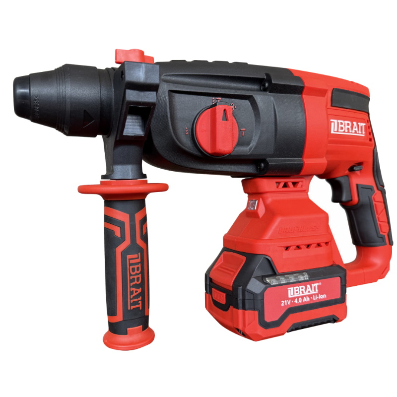 Перфоратор аккумуляторный Brait 21.01.276.064, АКБ 4Ач*2шт, 0-4450 уд/мин - предназначен для сверления отверстий в бетоне, стали и древесине.Преимущества Оборудован бесщеточным двигателем, который обеспечивает отличную производительность и долгий срок службы Благодаря системе SDS-Plus замена оснастки занимает минимум времени и усилий Модель питается от литий-ионного аккумулятора напряжением 21В LED - подсветка Реверс предусмотрен для легкого извлечения застрявшего бура