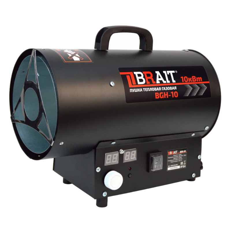 Пушка тепловая газовая Brait 25.01.043.076, 10 кВт, давление 0.5 бар, расход 0.73 кг/ч, производительность 320 м3/ч BGH-10