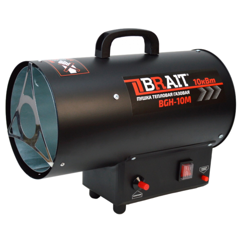 Пушка тепловая газовая Brait 25.01.038.076, 10 кВт, давление 0.5 бар, расход 0.73 кг/ч, производительность 320 м3/ч BGH-10M