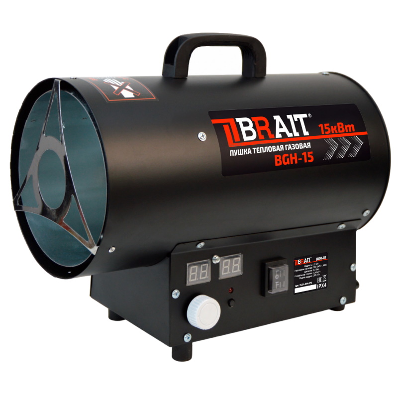 Пушка тепловая газовая Brait 25.01.044.076, 15 кВт, давление 0.7 бар, расход 1.09 кг/ч, производительность 320 м3/ч BGH-15
