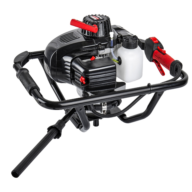Мотобур бензиновый Elitech 211236, 2-тактный, 64см3, 2.2кВт/3л.с, 8800об/мин предназначен для бурения грунта и льда шнеком диаметром от 40 мм до 200 мм на глубину до 1,8 метров. При эксплуатации мотобура необходимо правильно выбрать тип шнека (для грунта, для мерзлого грунта или для льда). Шнеки для разных типов грунта отличаются режущей головкой.Преимущества В случае заклинивания шнека в грунте, происходит мгновенная его остановка за счет возникающего контакта рычага защиты с ногой оператора, защищая оператора от травмы и редуктор мотобура от поломки Мощность 3,0 л.с. Двигатель 64 куб.см «Легкий» старт» Передаточное число редуктора 30:1 Приводной вал 20 мм Макс. диаметр шнека 200 мм