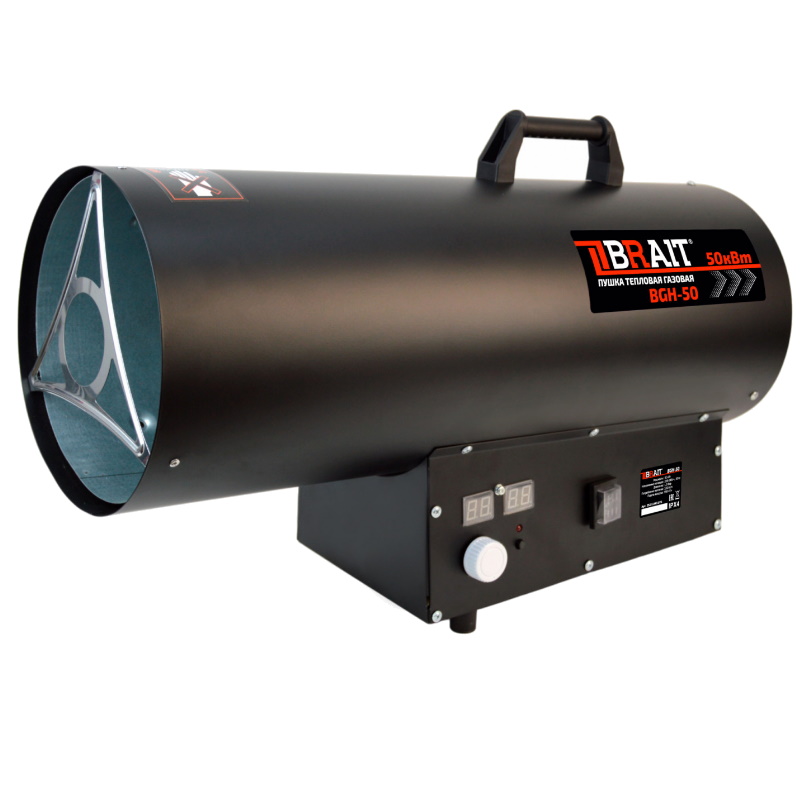 Пушка тепловая газовая Brait 25.01.047.076, 50 кВт, давление 1.5 бар, расход 3.63 кг/ч, производительность 950 м3/ч BGH-50