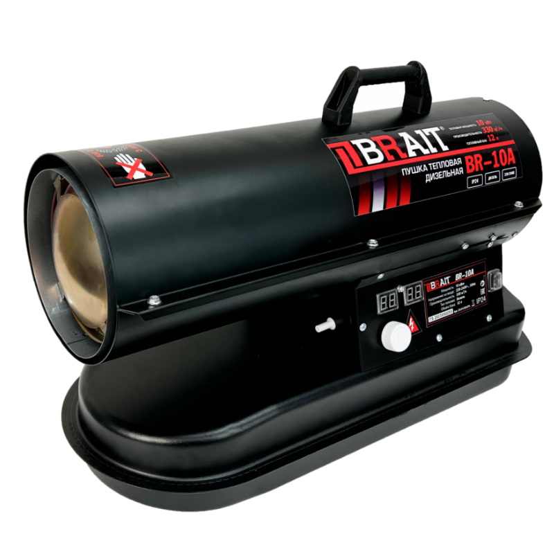 Пушка тепловая дизельная Brait 25.01.030.076, 10 кВт, производительность 330 м³/ч, бак 12 л, расход топлива 0.8 л/ч BR-10A