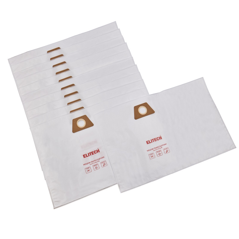 Пылесборник для пылесоса Elitech 183030, 3-х слойный, одноразовый, 60л, 10шт., для ПС1260А 2310.000800