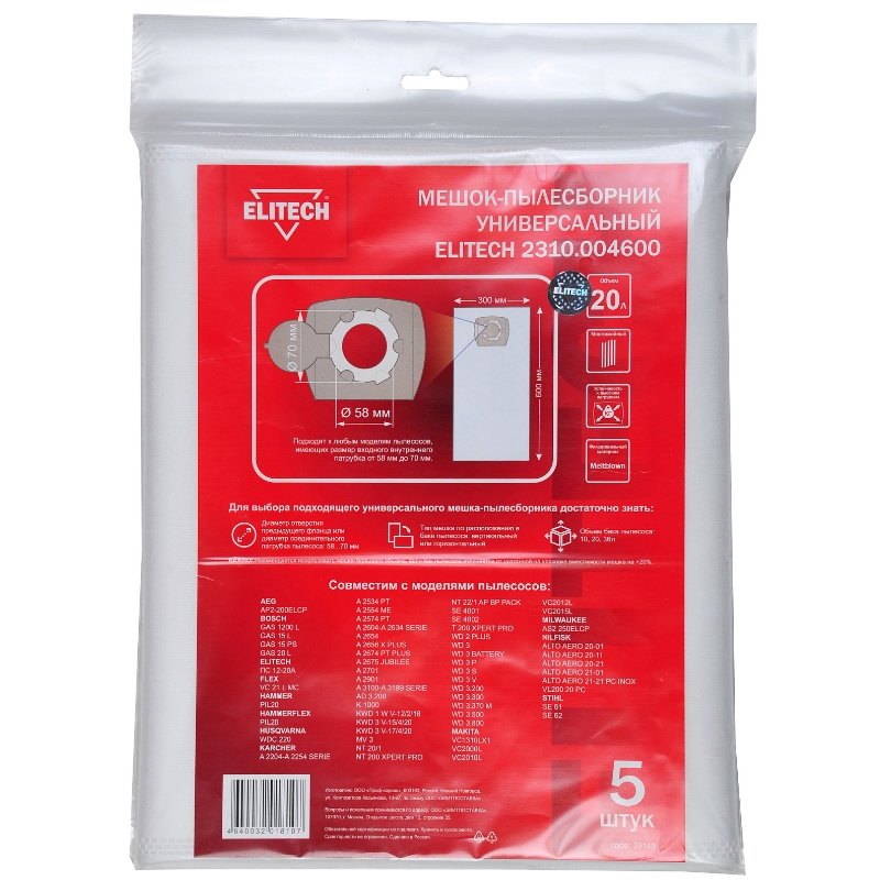 Мешки для пылесоса ELITECH