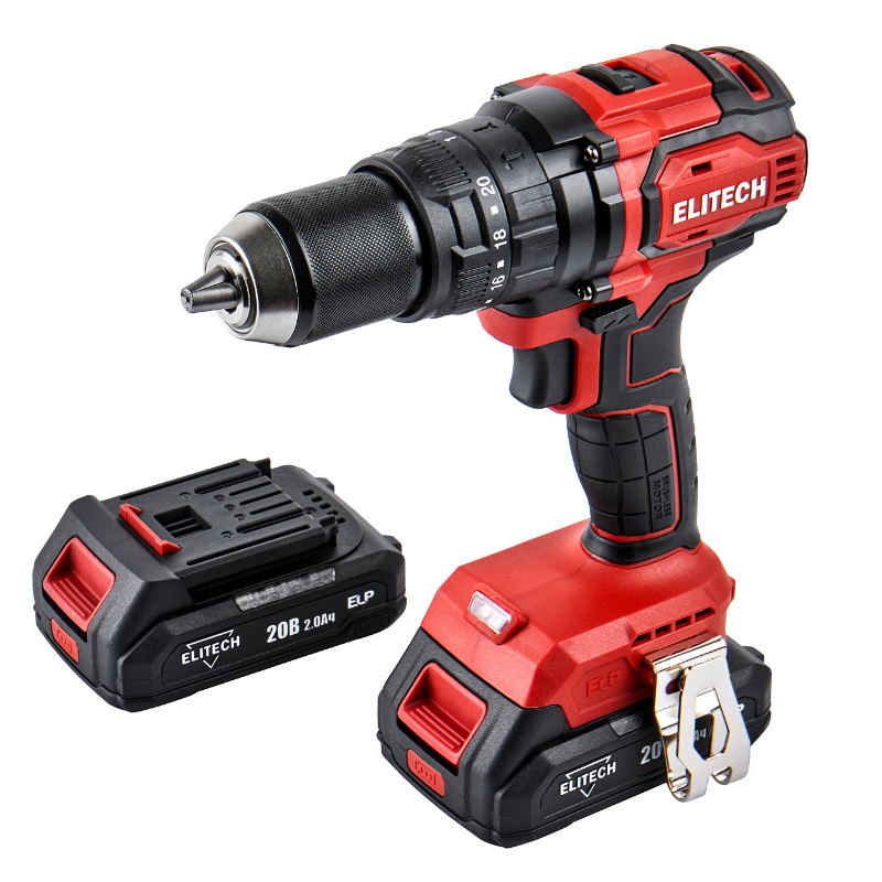 Дрель аккумуляторная Elitech 205679, ударная, бесщеточный, 20В, 2х2.0Ач, ELP, БЗП-13 мм ДА 20УБЛ2 (E2201.047.01)