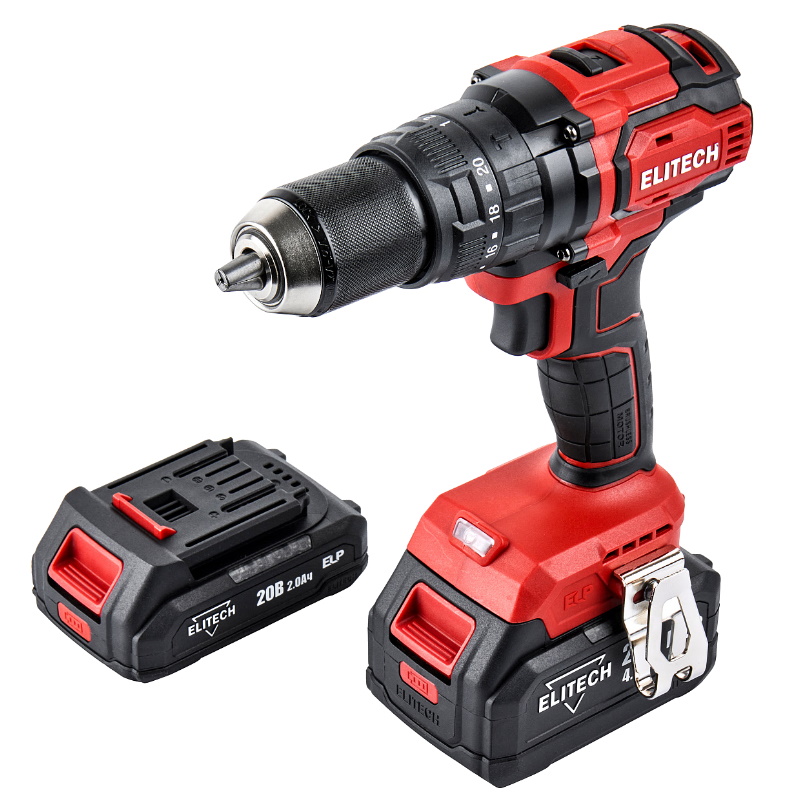 Дрель аккумуляторная Elitech 205680, ударная, бесщеточный, 20В, 2.0Ач+4.0Ач, ELP, БЗП-13 мм ДА 20УБЛ2 (E2201.047.02)