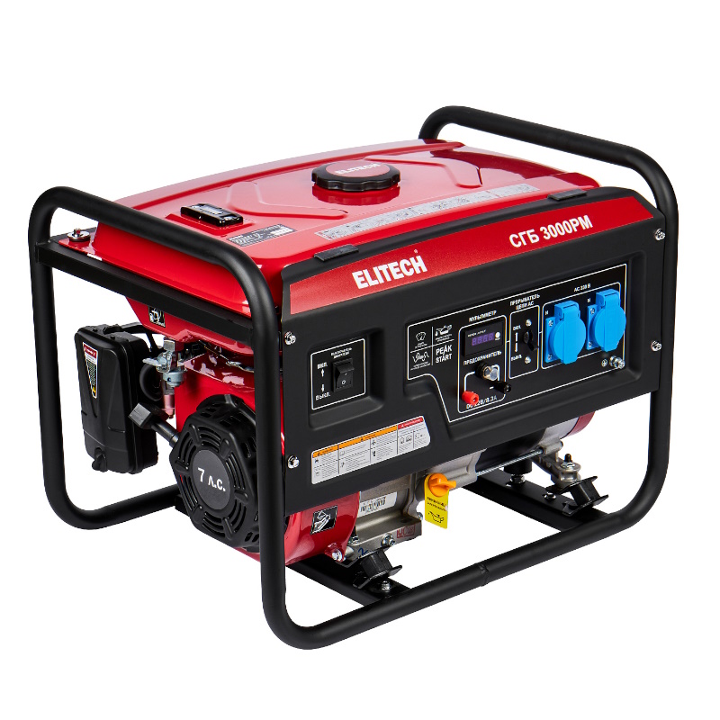 Генератор бензиновый Elitech 205550, 4-т, мак 2.8/ном 2.5 кВт,230В-11А СГБ 3000РМ