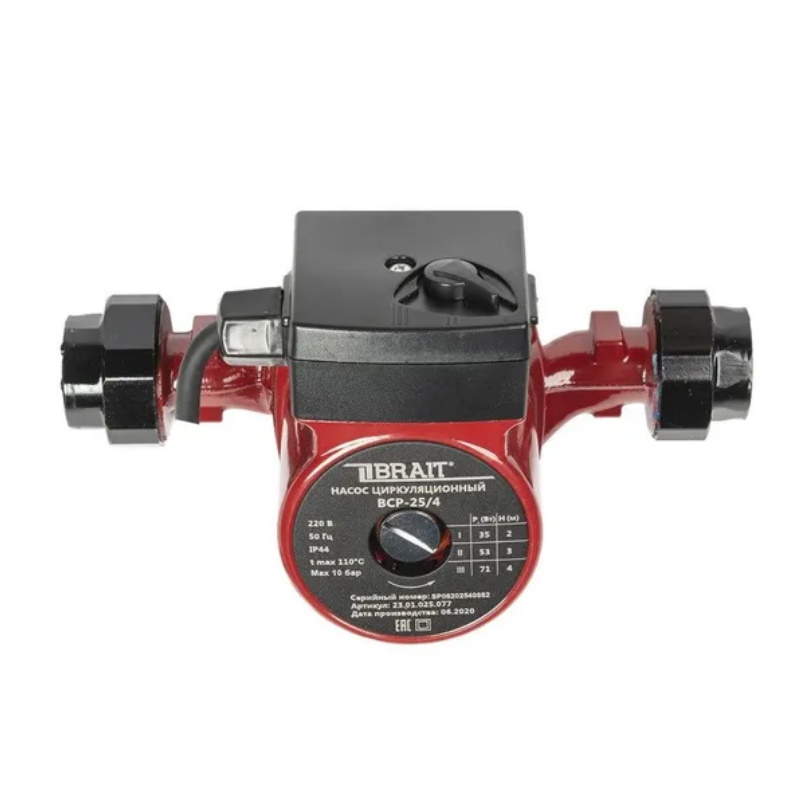 Насос циркуляционный Brait CN-25/4 35/53/71Вт, максимальная подача 20/30/40 л/мин - это ключевой элемент системы водоснабжения, обеспечивающий стабильное и эффективное перемещение жидкости.Преимущества Насос для отопления Брайт имеет 3 режима работы с мощностью 35 Вт, 53 Вт и 71 Вт, соответственно максимальная подача воды также зависит от режима работы: 20 / 30 и 40 литров в минуту, максимальный напор составляет от 2 до 4 метров. Всё это обеспечивает комфортную и стабильную работу электронасоса для воды За счет высокоэффективных технологий насосная станция для воды для дома отличается низким энергопотреблением и долговечностью Присоединительный размер составляет 1 1/2 дюйма Корпус насосной камеры выполнен из чугуна, а электродвигателя - из алюминия Рабочее колесо сделано из полимеров для предотвращения разрушения под действием окислительных реакций Керамические уплотнители охлаждаются и смазываются за счет движение теплоносителя Стравливание воздуха выполняется через заглушку ротора