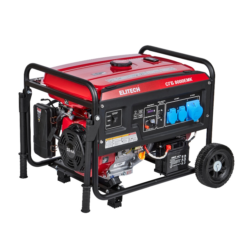 Генератор бензиновый Elitech 205553, 4-т, мак 6.5/ном 6 кВт, 230 В-27.2 А СГБ 8000ЕМК