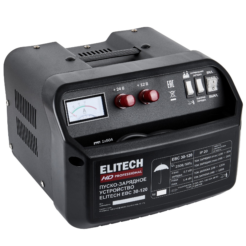 Устройство пуско-зарядное Elitech HD 206811, 12/24 В, 0.8/3.6 кВт, заряд 12/20 А EBC 30/120