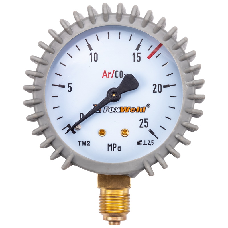 Манометр для редуктора FoxWeld WR500 , аргон/углекислота, ВД (пр-во /КНР) - предназначен для измерения и визуального контроля давления защитного газа.Преимущества Аналоговая индикация — наглядное считывание показаний по стрелочной шкале Универсальность — совместимость с аргоном и углекислым газом Компактность и малый вес — удобство монтажа и эксплуатации Прочные материалы — устойчивость к коррозии и механическим нагрузкам Стандартное резьбовое соединение (G 1/4) — совместимость с большинством редукторов серии WR Чёткая градуировка шкалы — точность измерений в рабочем диапазоне