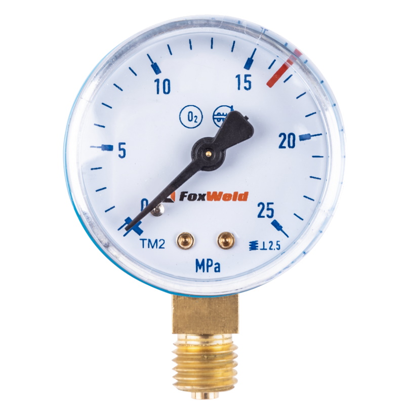 Манометр FoxWeld , 25 МПа, кислородный, латунь - предназначен для измерения и отражения давления кислорода от 0 до 25 МПа в баллоне при выполнении сварочных работ.Преимущества В данном измерительном приборе применяется аналоговый метод работы и индикации Присоединяется радиально Корпус выполнен из латуни Длительный срок эксплуатации Надежность в использовании
