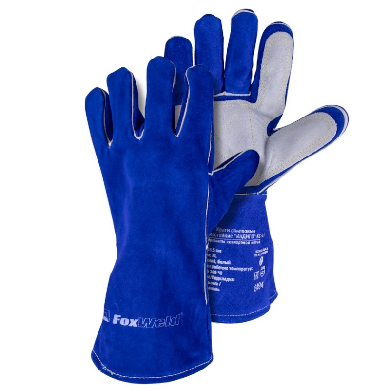Краги спилковые термостойкие FoxWeld "ИНДИГО" 8494 КС-01 (размер: 10-XL)