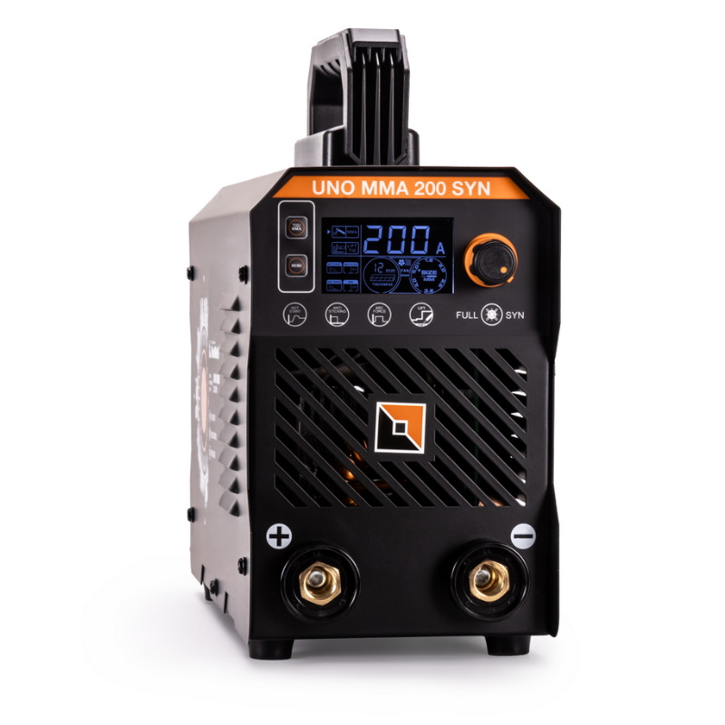 Сварочный аппарат FoxWeld UNO MMA 200 SYN c синергетическим управлением предназначен для ручной дуговой сварки (MMA) любыми типами электродов, а также для сварки вольфрамовыми электродами в среде инертного газа аргон (TIG LIFT). В модели есть полноценная синергетика, которая рекомендует соотношение параметра силы тока сварки к толщине свариваемого сплава металла.Преимущества Процесс поджига дуги сварки в среде Аргона вольфрамовым электродом происходит за счёт касания При условии работы от сети с некачественным электроснабжением, аппарат может хорошо работать с сетевым напряжением от 140 до 270 вольт, процесс сварки при этом стабилен В источнике питания включается и отключается функция VRD. При включении данной опции снижается напряжение холостого хода до параметров, которые не угрожают жизни человека Байонеты мощные, надёжные, размером 35-50, позволяют с минимальными потерями снять всю мощность сварочного тока Регулируемые функции Hot Start (Горячий старт) и Arc Force (Форсаж дуги) Функция Antisticking (Антизалипание) с возможностью отключения Присутствует защитная опция, которая отключает сварочный аппарат при перегреве, работает данная система от термодатчика, установленного на радиаторе выходных диодов. Выдув воздушного потока осуществляется через переднюю панель аппарата Сварочный аппарат снабжён массивной и надёжной складывающейся ручкой для транспортировки