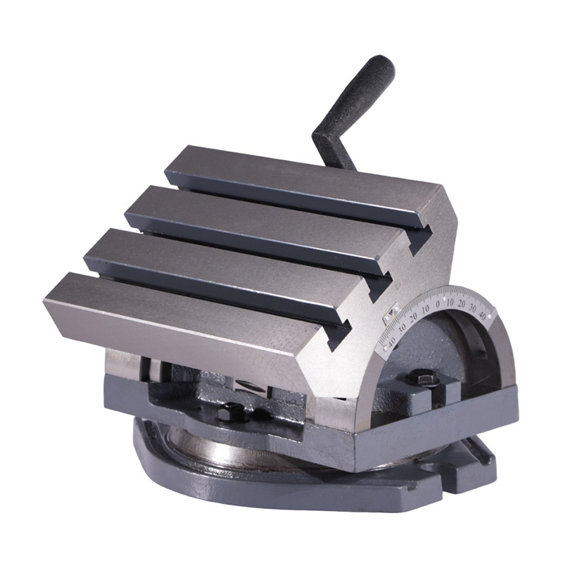 Стол поворотный координатный наклонный Visprom 100027 предназначен для использования в качестве дополнительной оснастки на универсальных фрезерных и сверлильных станках. Преимущества Использование стола позволяет успешно выполнять такие операции как фрезерование, сверление и обработка отверстий, фрезерование пазов и уступов, и других элементов детали под углом от 0° до 45° При использовании увеличивается производительность обработки за счет возможности установки разных углов и возможности поворота стола вокруг своей оси Рабочая поверхность стола отшлифована Все установки жестко фиксируются гайками и болтами Материал изготовления – чугун