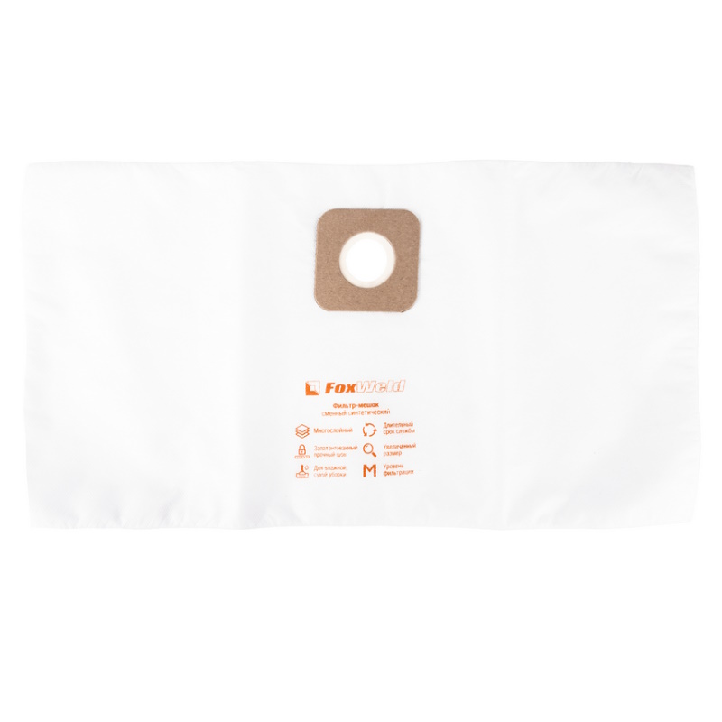 Мешок-пылесборник FoxWeld 9767, комплект 5 шт. предназначен для строительных пылесосов, в частности для модели FoxWeld VC 15. Это расходный материал, который используется для сбора пыли и мусора во время работы пылесоса.Преимущества Длительное сохранение силы всасывания благодаря особой структуре материала: одни слои эффективно задерживают тонкую пыль, другие пропускают отфильтрованный воздух Прочность и устойчивость к разрывам за счёт многослойности синтетического материала, что позволяет собирать острые предметы и небольшие объёмы воды и жидких загрязнений Универсальность благодаря унифицированному посадочному фланцу Вместительность — объём 15 л позволяет собирать большие объёмы мелкого и крупного мусора