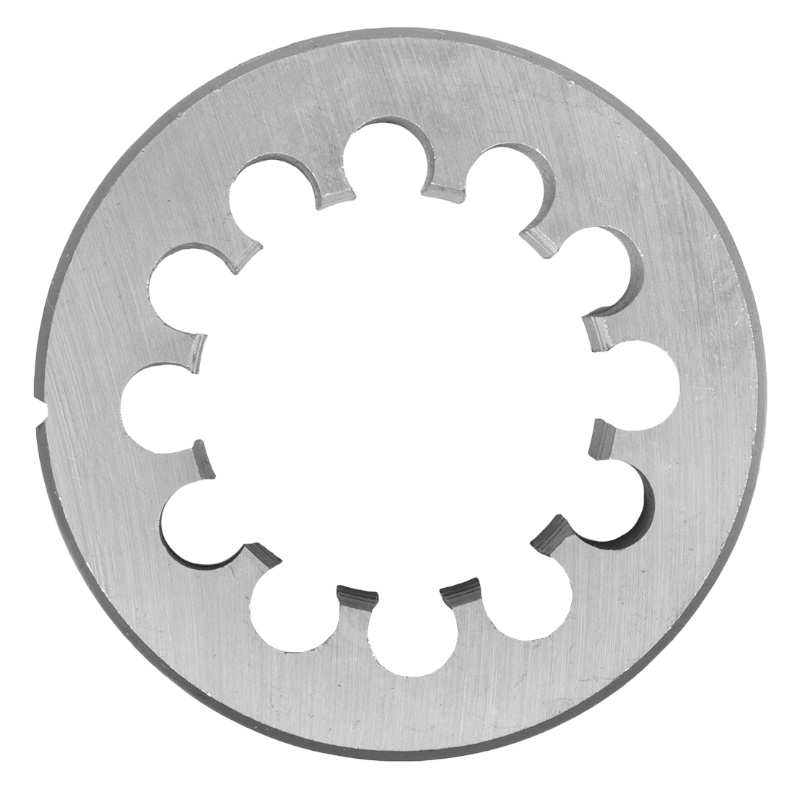 Плашка метрическая Hortz , М 48 х2, 9ХС (ГОСТ 9740-72 2650-2675) предназначена для нарезания и калибровки внешней метрической резьбы на металлических изделиях (болты, шпильки, трубы и пр.) за один проход. Преимущества Изготовлена из инструментальной стали 9ХС Подходит для общих слесарных работ по нелегированным сталям Может использоваться для восстановления замятой резьбы (ограниченно)