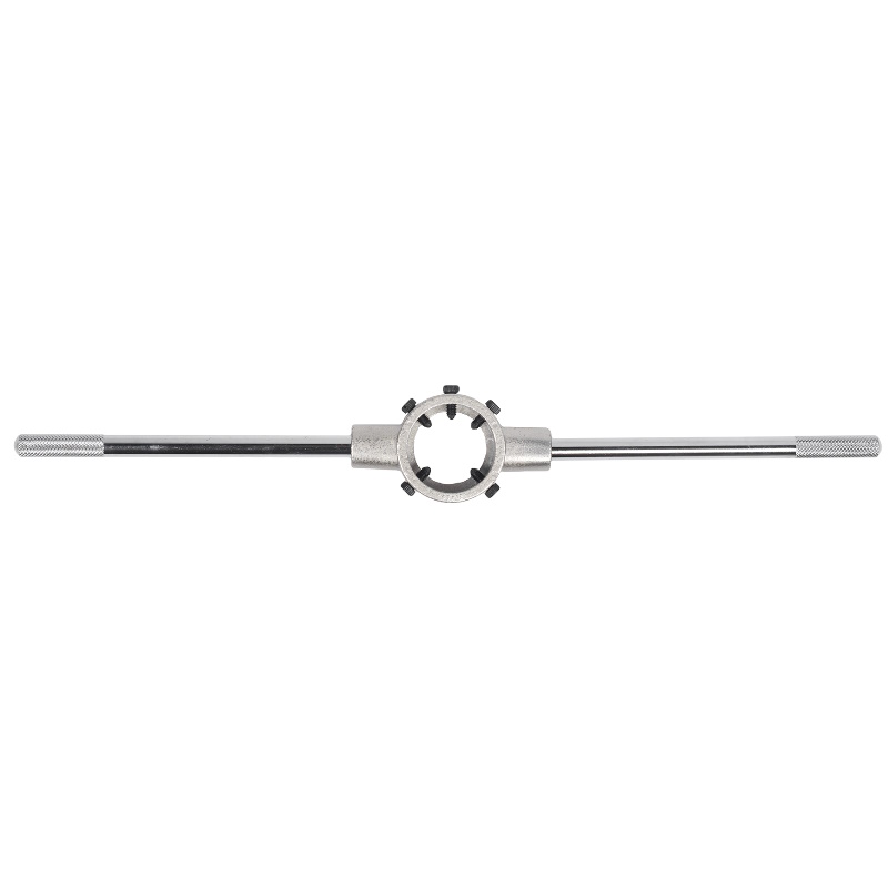 Плашкодержатель Hortz , 45х18 (М16-М21; G, K, RС 3/8; G, K 1/2; K 5/8) — это инструмент для закрепления плашек и передачи усилия при нарезании наружной резьбы вручную. Он обеспечивает надёжное удержание инструмента и позволяет выполнять резьбовые работы с точностью.Преимущества Рифлёные рукоятки обеспечивают удобный хват и упрощают вращение держателя Центральное отверстие оптимального размера позволяет расположить плашку без перекоса и погрешности, что важно для точности нарезания резьбы Прочная конструкция из инструментальной стали гарантирует долговечность при стандартных нагрузках