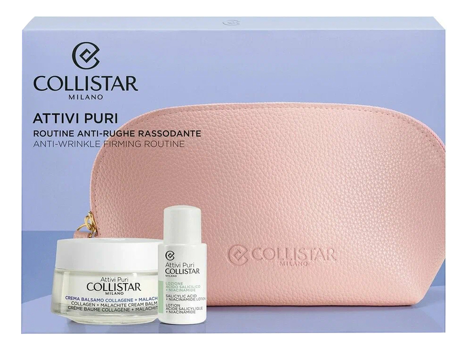 Collistar Набор для лица Attivi Puri (крем-бальзам с коллагеном и малахитом 50мл + лосьон себонормализующий 15мл + косметичка)