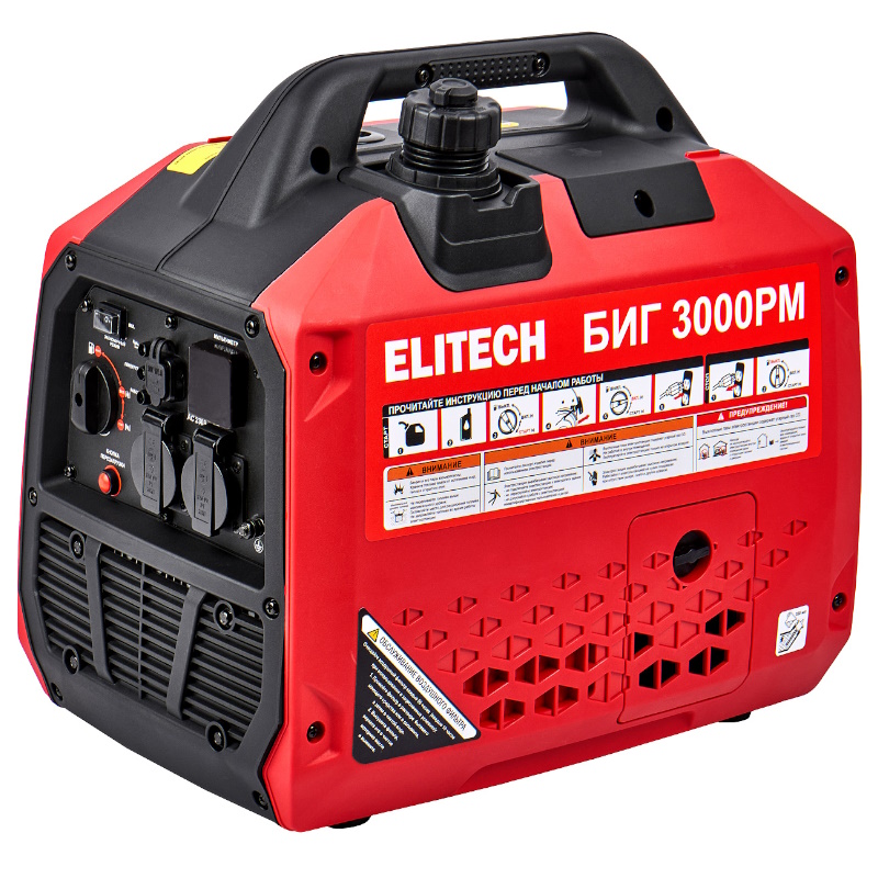 Генератор бензиновый инверторный Elitech 210597, 4-тактный, макс.3кВт/ном2.8кВт, 230В-12.2А/12В-8.3А БИГ 3000РМ