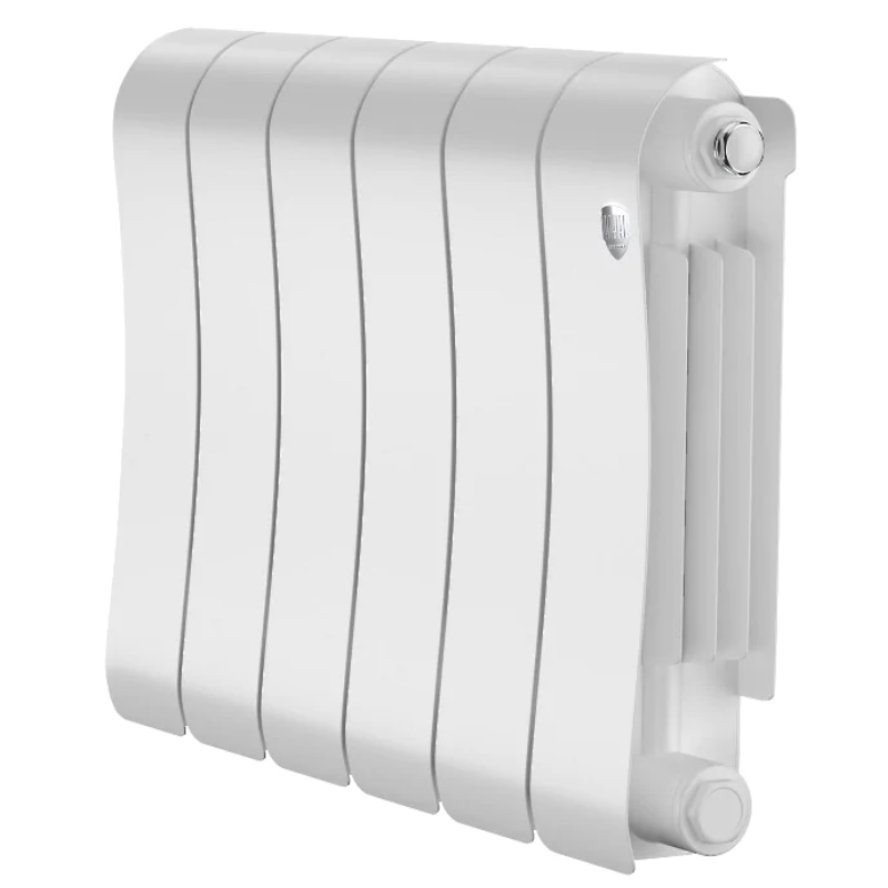 Радиатор биметаллический Royal Thermo , 6 секций - эксклюзивный биметаллический дизайн-радиатор для любых систем отопления с боковым подключением.Преимущества Применение полностью стального закладного элемента, выполненного из углеродистой стали марки 20, которая отличается повышенной коррозионной стойкостью и эксплуатационной надежностью. Гарантирует надежную работу в системах, подверженных гидроударам и с химически агрессивными теплоносителями (в том числе антифризами) Нанесение экологически чистых нано-красок AkzoNobel (Нидерланды) и FreiLacke (Германия) в семь этапов гарантирует стойкость к механическим повреждениям и обеспечивает долговечность покрытия радиатора в помещениях с повышенной влажностью Три цвета Bianco Traffico, Silver Satin и Noir Sable дизайнерской палитры FUTURA AKZONOBEL (Нидерланды) позволяют создать абсолютно уникальный радиатор