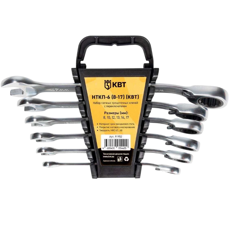 Набор гаечных комбинированных трещоточных ключей с переключателем реверса КВТ (8-17) 91952, серия КВТ-PROFESSIONAL НТКП-6