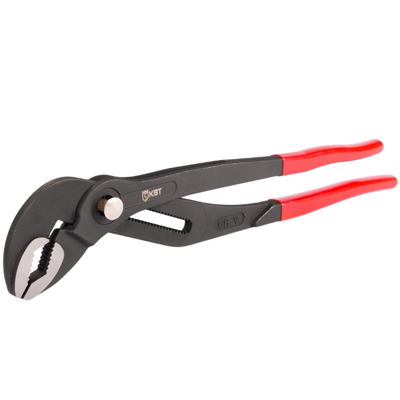 Клещи переставные КВТ длиной 400 мм из серии ПРАКТИК предназначены для захвата плоских, круглых и многогранных деталей в слесарно-монтажных и сантехнических работах. Изготовлены из кованой хромованадиевой стали с зубьями твердостью HRC 60-62 и кнопочной самофиксацией для быстрой регулировкиПреимущества Кнопочная самофиксация ускоряет перестановку без инструментов и обеспечивает надежный захват Зубья повышенной твердости предотвращают проскальзывание на трубах и гайках Пластизольные рукоятки гарантируют антискользящий хват и комфорт при длительной работе Усиленная конструкция подходит для тяжелых нагрузок в профессиональном использовании