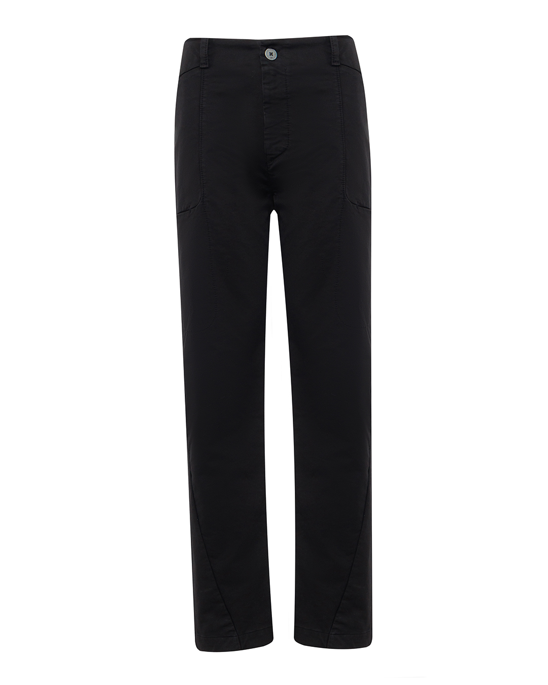 Эти брюки поражают своей лаконичностью и универсальностью, выполненные в благородном чёрном цвете. Ткань средней плотности гарантирует комфорт и удобство при носке, сохраняя при этом безупречный внешний вид. Анатомически точный крой подчёркивает линию силуэта, создавая утончённый и современный образ. Линия талии оформлена срезанным поясом с продуманными шлевками для ремня, обеспечивающими возможность адаптации изделия под индивидуальный стиль владельца. Вертикальные швы на передней панели создают визуально стройнящий эффект, что придаёт элегантность и сдержанную строгость образу. Застёжка на пуговицу и молнию подчеркивает классический дух, делая брюки максимально функциональными. Карманная группа аккуратно включена в дизайн: вместительные боковые карманы обеспечивают практичность, а задние прорезные карманы добавляют элемент изящества и формальной завершённости. Эти брюки — идеальный выбор для тех, кто ценит стиль и комфорт, легко вписываясь как в деловой, так и в повседневный гардероб.