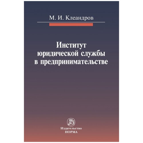 Институт юридической службы в сфере предпринимательства рассматривается в системе предпринимательского права как отрасли законодательства, как отрасли науки и как учебной дисциплины; исследуются его теоретические и практические проблемы. Обосновывается необходимость наделения юрисконсульта предпринимательской сферы определенным должностным иммунитетом. Предлагается механизм обеспечения этого иммунитета. Для работников и руководителей юридических и иных служб предпринимательских структур, ученых, преподавателей, аспирантов и студентов юридических вузов, практикующих юристов, а также лиц, интересующихся данной проблемой.