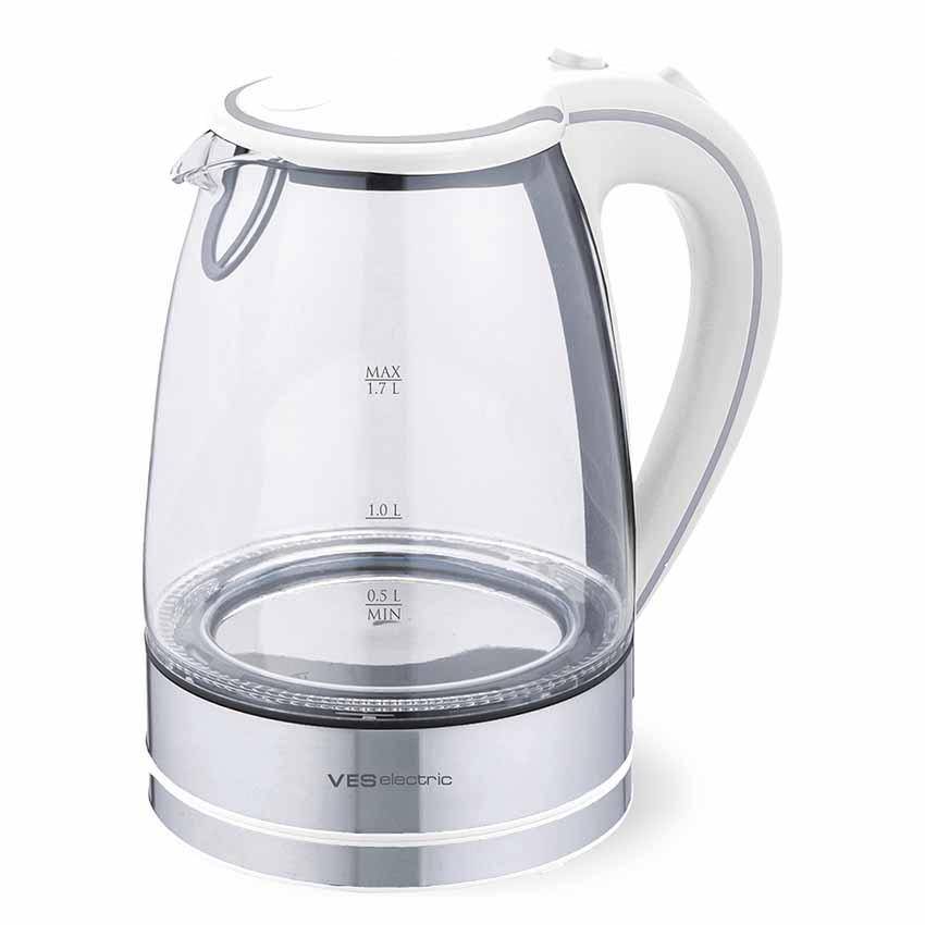 Удобный и простой в использовании чайник ves 2005 изготовлен из жаропрочного стекла, что позволяет максимально сохранить полезные свойства и вкусовые качества воды. благодаря мощности в 2200 вт и нагревательному элементу скрытого типа, быстро вскипятит воду объемом до 1,7 литров. подсветка резервуара создаст неповторимую атмосферу во время работы прибора. на рынке бытовой техники этот чайник пользуется неизменной популярностью благодаря высокому качеству, безопасности и удобству в использовании.