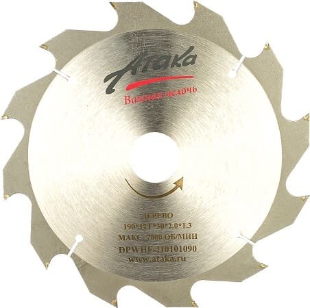 - Код производителя: Диск пильный 190*12T*30 дерево б/рез профи Атака