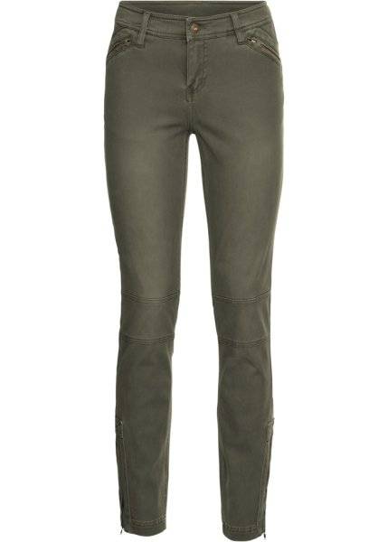 Брюки Skinny с молниями (темно-оливковый) bonprix для женщин