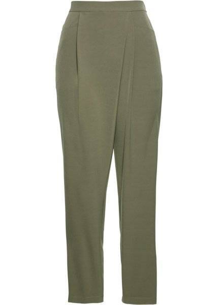 Брюки с поясом без застежки (оливковый) bonprix для женщин
