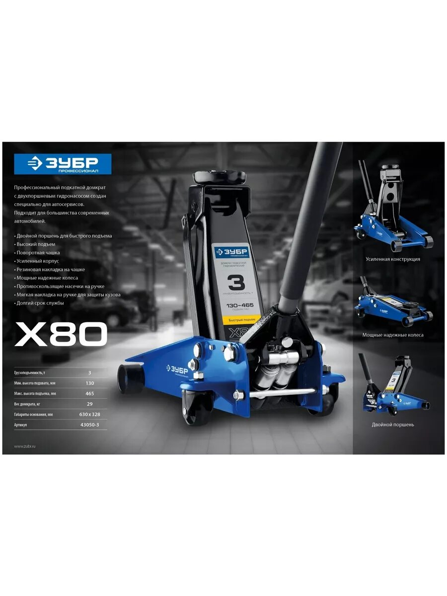 Подкатной полупрофессиональный домкрат ЗУБР с низким подхватом, практическое использование и отзыв