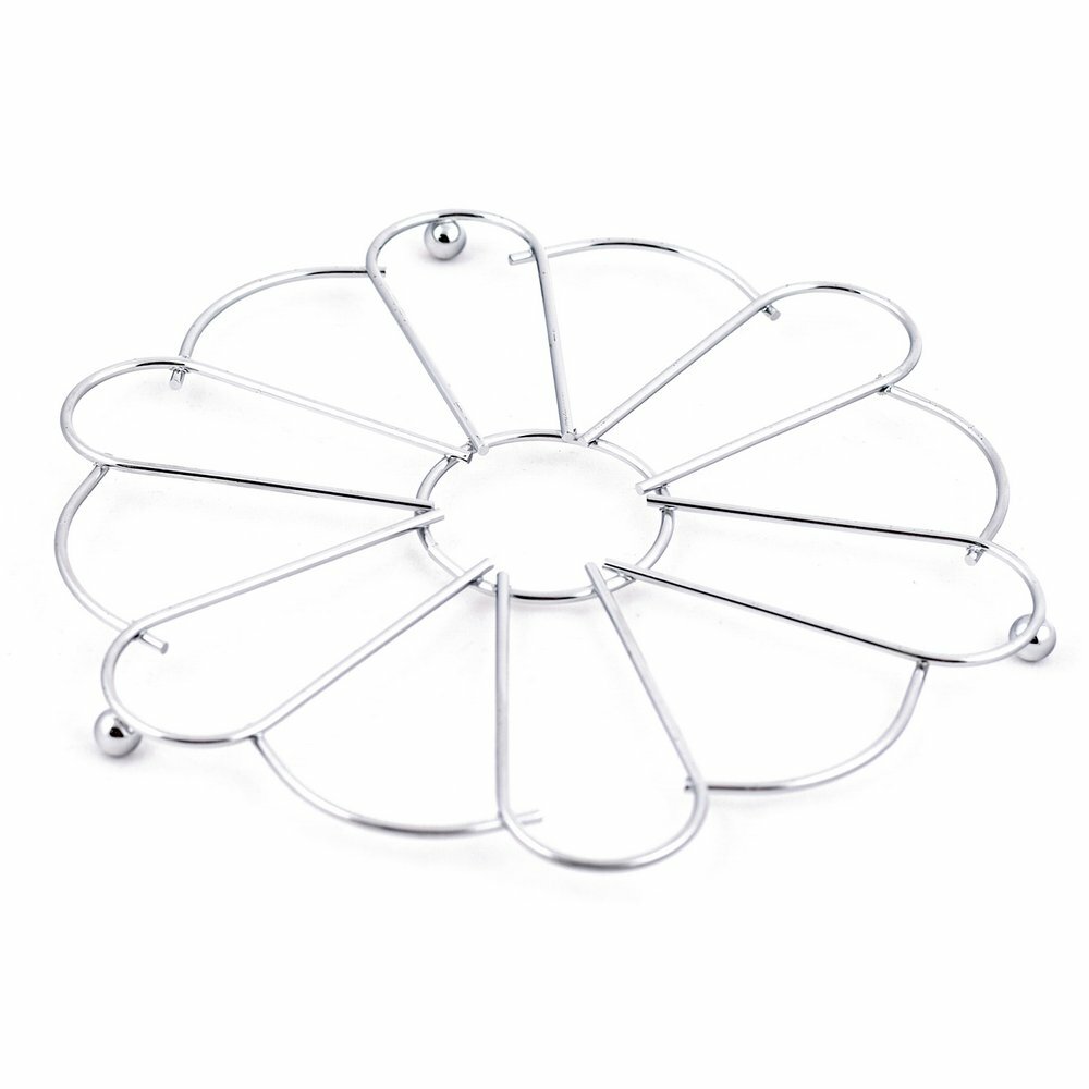 Используется для защиты поверхности стола, скатерти, клеенки и других от повреждений. Изготовлена из стальной хромированной проволоки.