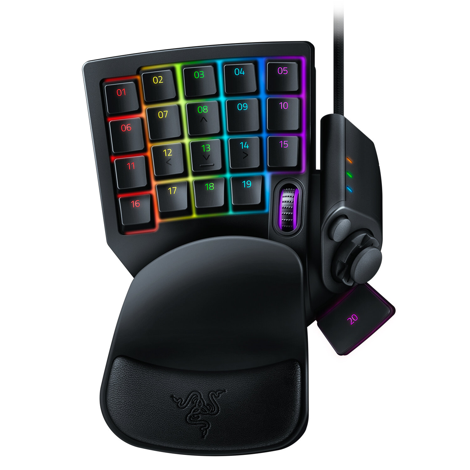 Клавиатура может похвастаться механическо-мембранными клавишами, которые эффективно сочетают в себе мягкий ход мембранных моделей с четким щелчком механики. Каждая из кнопок срабатывает еще на половина нажатия, что обеспечивает более быстро выполнение команд. Устройство оснащено 32 программируемыми клавишами, для которых можно назначить разнообразные умения, а также сложных комбинаций. Также имеется джойстик под большой палец, который можно использовать как для перемещения, так и для большего количества команд. Реализованная в клавиатуре функция Razer Hypershift позволяет назначить для одной кнопки сразу несколько наборов команд. Кроме того прибор оснащен яркой подсветкой Razer Chroma, с помощью которой вы сможете персонализировать гаджет, установив один из 16.8 миллионов цветовых оттенков. В данном устройстве реализована поддержка Razer Synapse 3 (Beta), что позволит вам сохранять все настройки устройства в облако или в саму клавиатуру.