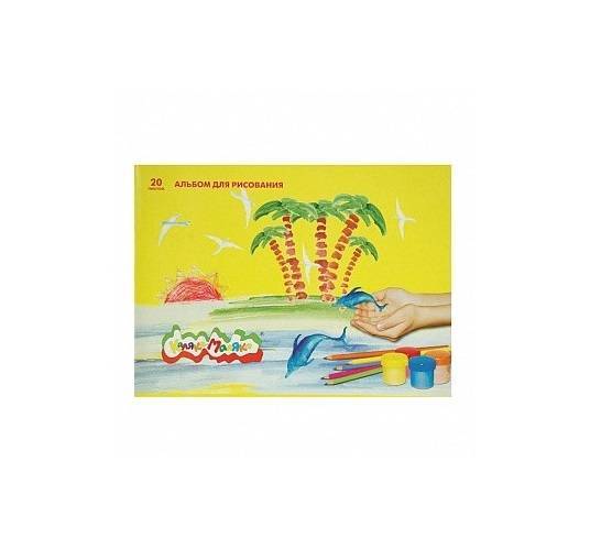 Альбом для рисования от "Каляка-Маляка" станет отличным подарком для юного художника. В альбоме двадцать листов, а значит, достаточно пространства для полета фантазии. Также у альбома интересная обложка, на которой изображен тропический берег. Такая обложка подарит ребенку возможность пофантазировать, представить что-то приятное, а потом перевернуть ее и начать творить собственные шедевры.