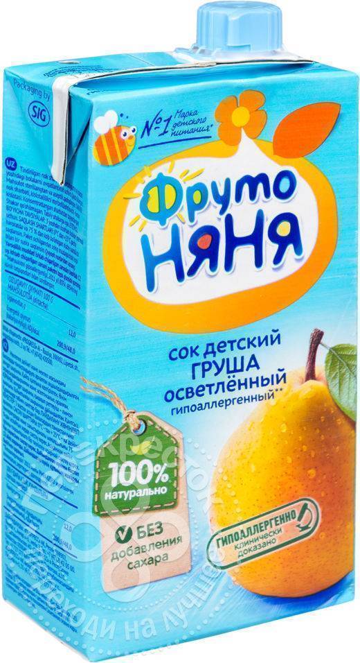Сок ФрутоНяня Груша 500мл – гипоаллергенный продукт, рекомендованный для питания детей с 3-х лет. 100% натуральный. Обладает приятным вкусом и насыщенным ароматом спелых фруктов. В составе нет сахара. Груша содержит много витаминов и минералов, славится своими антиоксидантными свойствами. Она полезна для костей и суставов, улучшает работу желудка и кишечника, выводит токсины, укрепляет иммунитет. Напиток хорошо утоляет жажду. Его можно налить в стакан или пить через трубочку. Наличие завинчивающейся крышечки позволяет неоднократно открывать и закрывать упаковку. Удобно брать с собой.