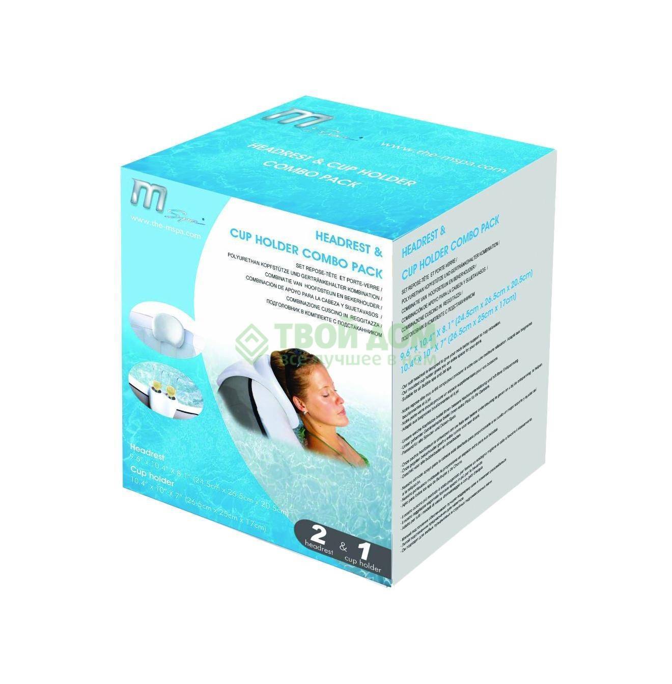 MSpa Набор аксессуаров для СПА: 2 подголовника и 1 подстаканник - съемные подголовники, использующиеся для надувных СПА бассейнов серии B0301350 от производителя MSpa. Изготавливаются из высококачественных водонепроницаемых материалов, устойчивых к химическим веществам и запахам. Покупая подголовники от компании MSpa, вы создадите особенный комфорт и обеспечите превосходную поддержку головы и шеи при принятии СПА процедур. В комплекте два подголовника и подстаканник. Комплектация: Подголовник - 2 шт Подстаканник Упаковка