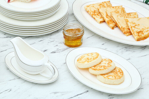 | Комплектация | 6 обеденных тарелок 25.5 см; 6 суповых тарелок 23 см; 6 закусочных тарелок 21 см; 1 салатник 23 см; 2 салатника 16.5 см; 1 блюдо 36.5 см; 1 блюдо 23.5 см; соусник+блюдо под него; солонка, перечница. |