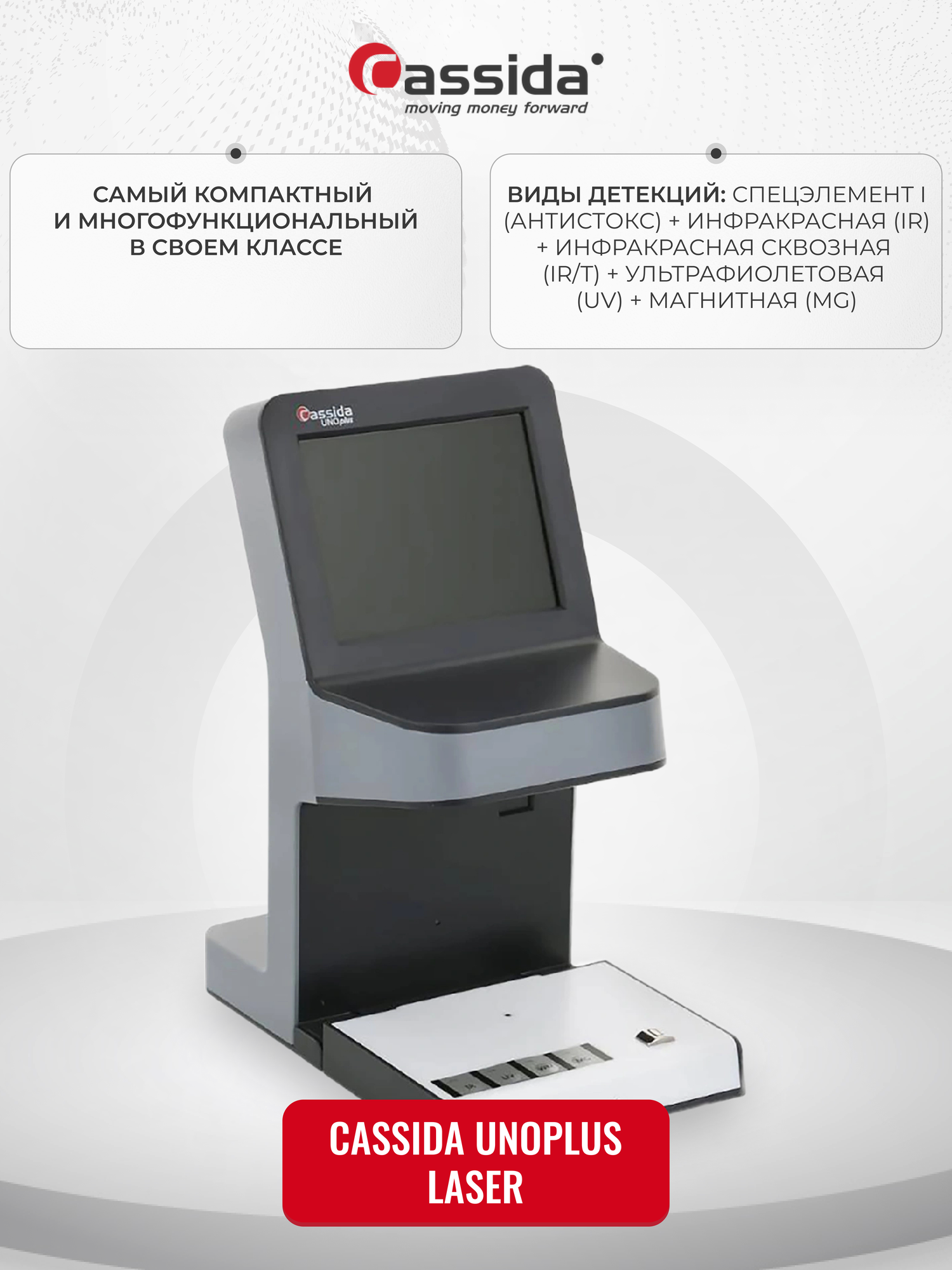 Детектор банкнот Cassida просмотровый мультивалюта UNOPLUS LASER