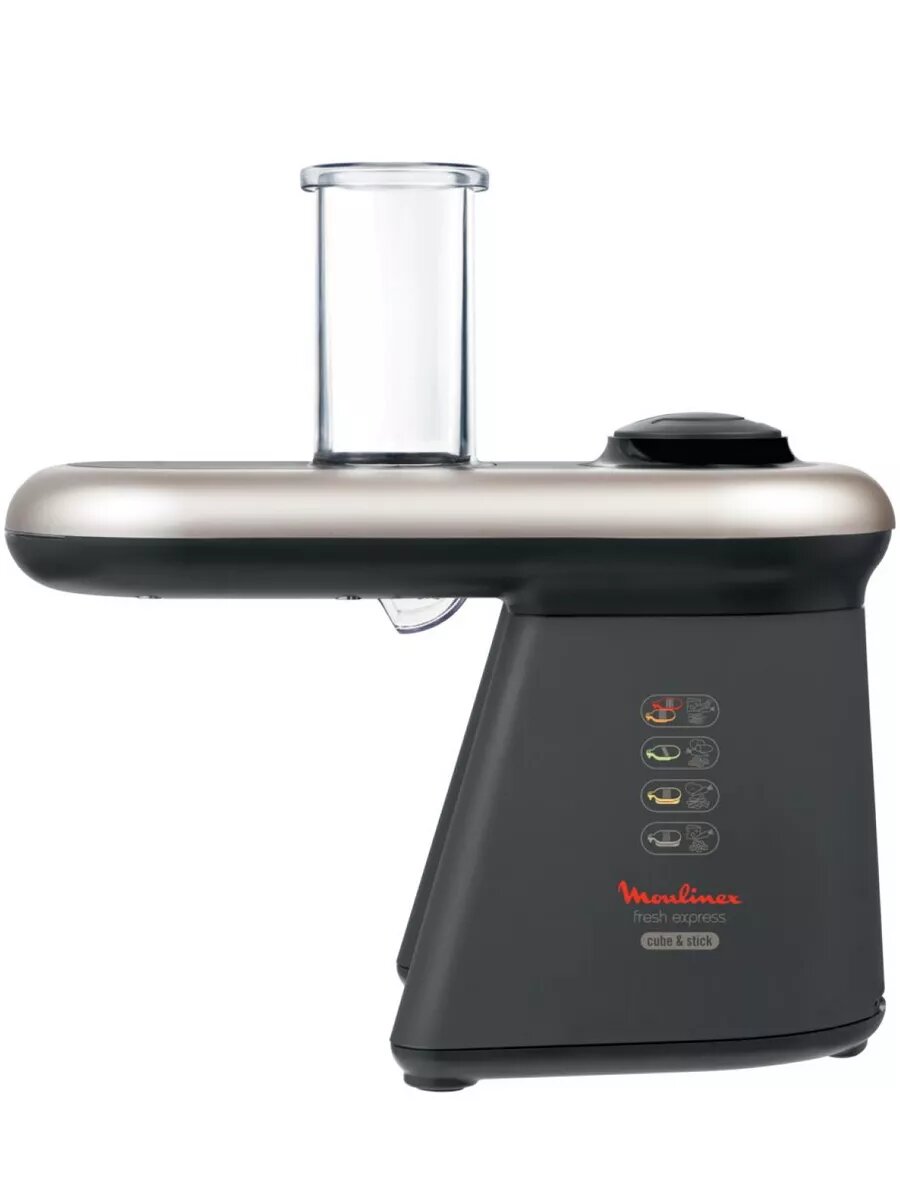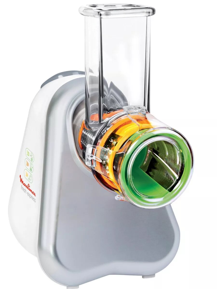 Приготовить 5 разных блюд за день – нет ничего проще! Благодаря 5 насадкам-конусам Fresh Express + позволяет вам натирать, нарезать кусочками и ломтиками овощи, фрукты, сыр или даже шоколад прямо в тарелку и сразу подавать на стол. Каждый конус имеет свой собственный цвет, чтобы вы могли одним взглядом выбрать нужную насадку. Кроме того, Fresh Express + оснащен увеличенным загрузочным отверстием, чтобы вам не пришлось нарезать продукты заранее.