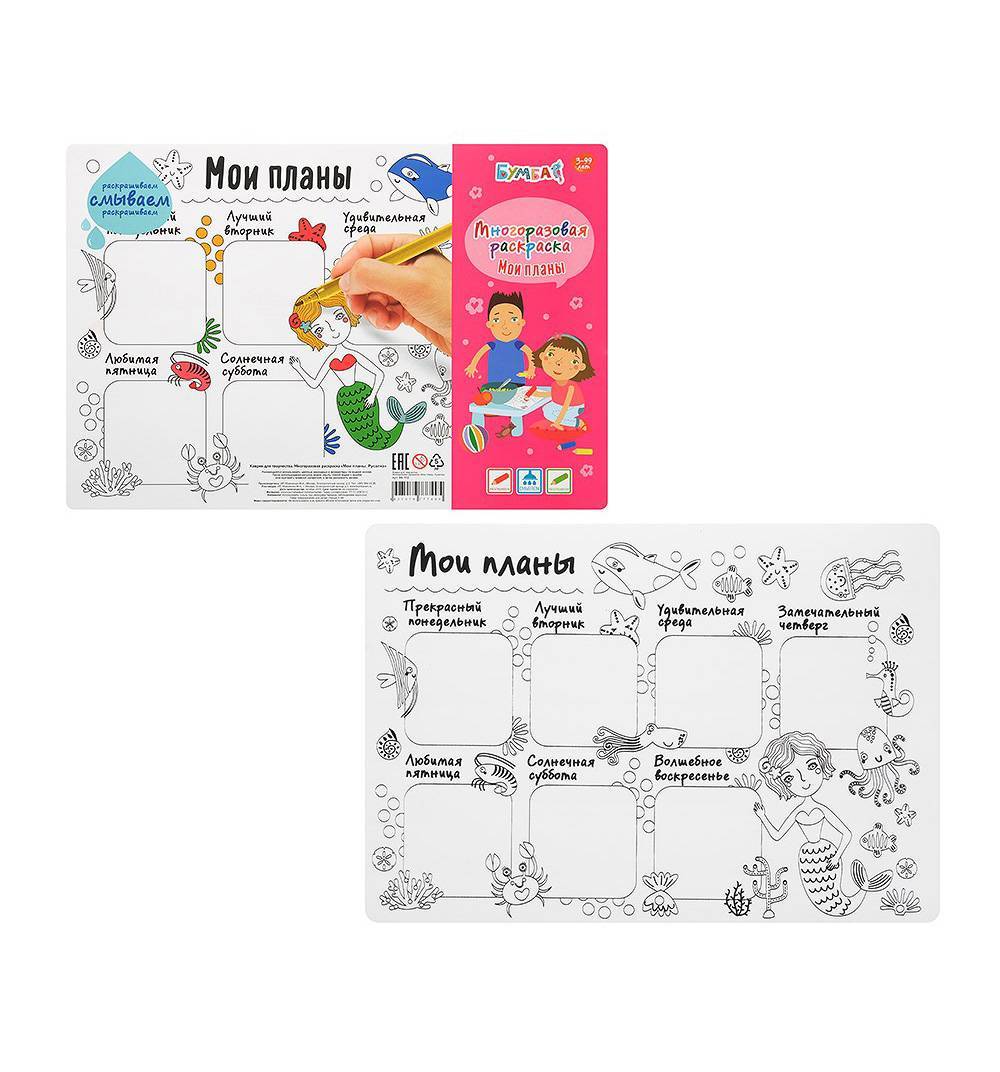Коврик для творчества-многоразовая раскраска Бумба Мои планы Русалка